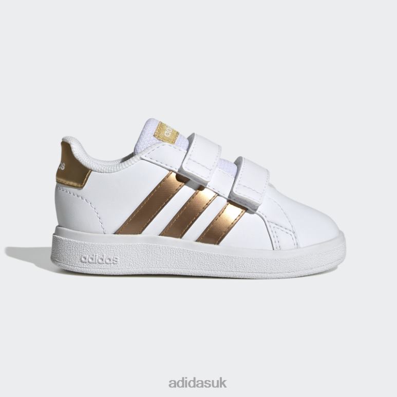 They’ll catch the light with these toddlers’ adidas shoes – something to match their inner sparkle. Shiny metallic pops from the 3-Stripes, heel tab and tongue label and stands out against the classic Grand Court silhouette. Cloudfoam cushioning makes all the difference in the midsole, so that every move they make (and they have a lot of them) feels comfortable and supportive.Made with a series of recycled materials, and at least 50% recycled content, this product represents just one of our solutions to help end plastic waste.