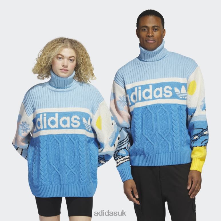 Go all in on merry. Taking a lighthearted approach to the classic holiday sweater, this adidas standout captures the spirit of the season – but with a twist. Exaggerated cable details set the stage for a cosy scene that plays out on the sleeves. That’s where you’ll find the Trefoil in animated form, so you know adventure isn’t far behind. In the mountains on one sleeve and on the beach on the other, this playful pal embodies the exuberance of heading out on holiday. A ribbed stand-up collar will keep your neck warm, and a loose fit lets you layer it with a long button-down or just a tee. This sweater was made using UNITEFIT – an all-gender fit system that was created with a spectrum of sizes, genders and forms in mind.