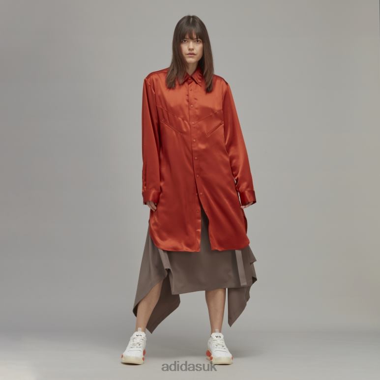 A celebration of the last two decades of Y-3. The Classic Tech Silk Shirt Dress creates a sophisticated drape and shine with the elegant silk fabric. Asymmetrical cutlines on the front create an impression. The silhouette hangs loosely on the body for a look and feel of flow.