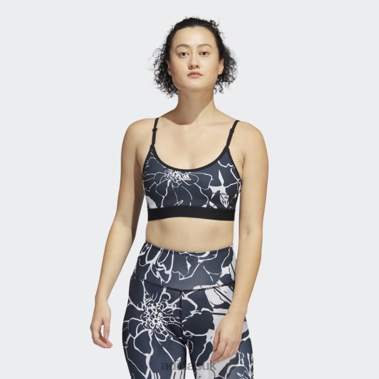 Push past a nagging plateau in Pilates or cross a mile-high hike off your bucket list. AEROREADY in this adidas light-support bra absorbs moisture, so you polish off your goals feeling dry, cool and comfortable. An allover floral print adds a pop of positive attitude to all your accomplishments.Made with a series of recycled materials, and at least 60% recycled content, this product represents just one of our solutions to help end plastic waste.