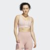 Cardio to arm day, you’ve got this. Pull on this adidas medium-support workout bra and focus on breaking personal records instead of breaking concentration. A keyhole opening adds style and extra ventilation. The mesh panel also helps you keep your cool. Feel dry and comfortable no matter how hard you push with AEROREADY. Remove the padding or don’t. Totally your call. Made with a series of recycled materials, and at least 60% recycled content, this product represents just one of our solutions to help end plastic waste.