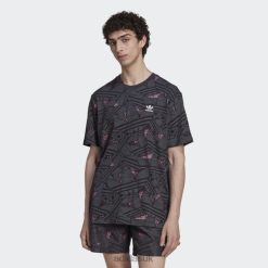 Adidas Shoes 8NL8814687 Adidas Men Black Rekive Trefoil Allover Print T-Shirt Black/Grey/Pink