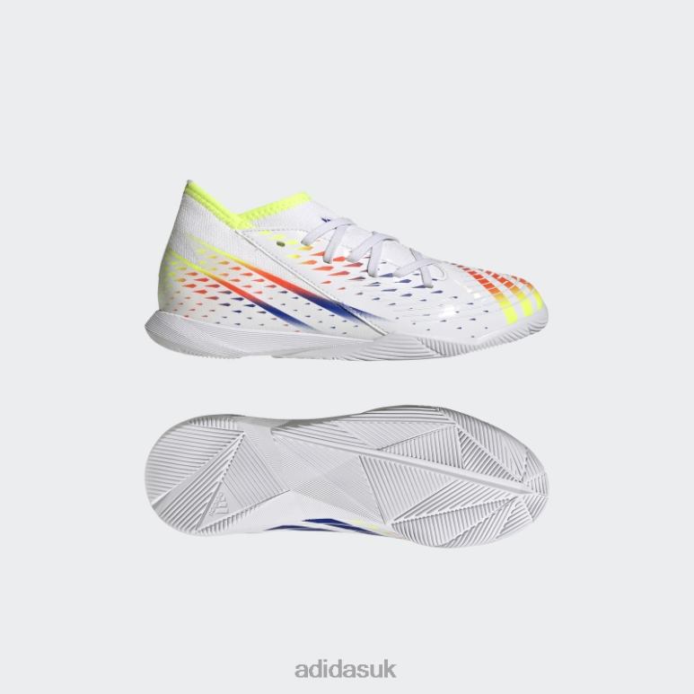 Swerve ordinary to find your edge. Introduce a brand-new side to your game in these juniors’ adidas Predator indoor soccer shoes. Deployed across their soft synthetic upper, grippy Control Zone print assists you with every touch of the ball. The combination of an adaptive collar and non-marking rubber outsole keeps you stable and in charge on flat, indoor courts.