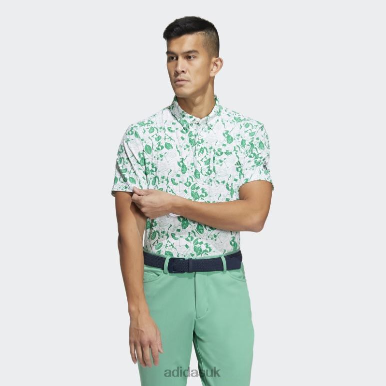 Bring some flare to your foursomes match in this adidas golf polo shirt. Stretchy seersucker flexes comfortably through every swing, and AEROREADY handles moisture to keep you feeling dry through the final hole. The allover print features Play Green graphics that celebrate the sport’s Scottish roots and nod to our efforts to reduce plastic waste.