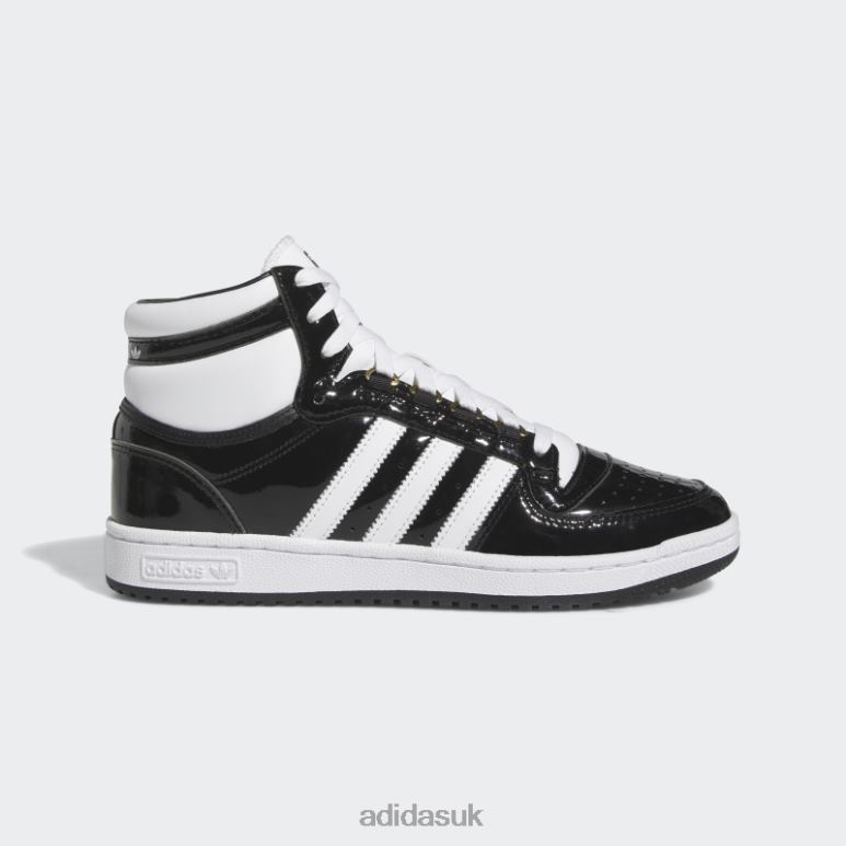 These adidas Top Ten RB Shoes offer a fresh perspective on the high top basketball shoe originally reserved for the best of the pro players. Celebrate that dynamic energy in show-stopping synthetic patent and an expressive design. Bold contrast colors frame the sleek silhouette. Metallic-gold eyelet rings add a stylish punch.