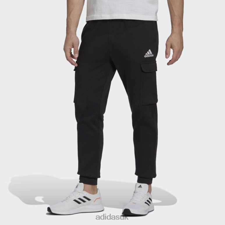 Adidas Uk 8NL886438 Adidas Men Essentials Fleece Regular Tapered Cargo Pants Black Adidas Black/White